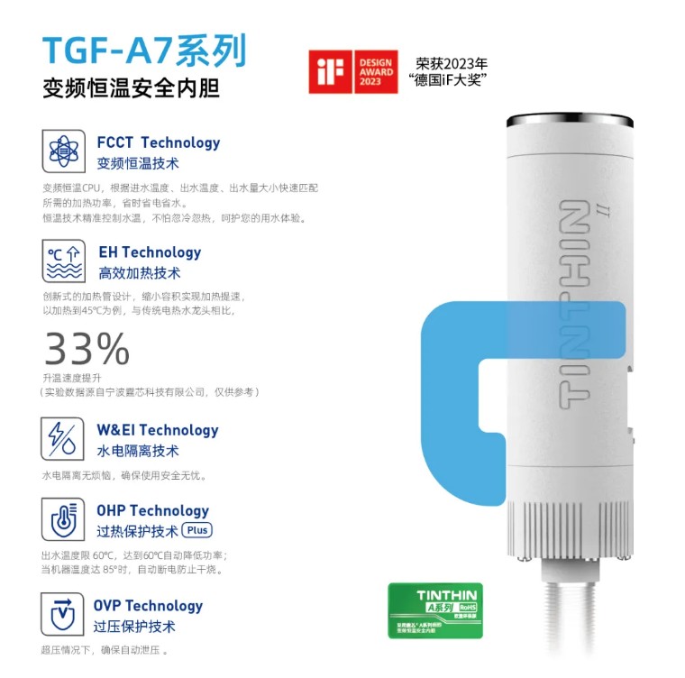 作為一款標(biāo)準(zhǔn)化的加熱模組,霆芯?高性能安全內(nèi)膽以高效加熱技術(shù)為核心,以多項(xiàng)安全技術(shù)為保障,成功應(yīng)用于電熱水龍頭、小廚寶、淋浴器、以及智能加熱類(lèi)等產(chǎn)品領(lǐng)域,解決中小型即熱式企業(yè)的技術(shù)難點(diǎn)。