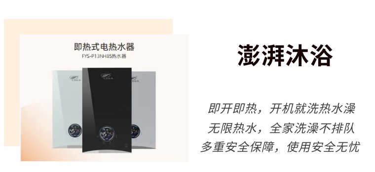 即熱式電熱水器則是適用于現(xiàn)代衛(wèi)浴風(fēng)格的美觀(guān)電器,超薄機(jī)身成就“浴室墻上一幅畫(huà)”,告別傳統(tǒng)電熱水器的臃腫。開(kāi)機(jī)就洗熱水澡,全家洗澡不排隊(duì)。熱力澎湃無(wú)限洗,舒適恒溫每一刻。